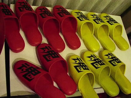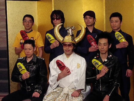おなじみ<グループ魂スリッパ>が登場。今回は特別にタワレコカラー☆箭内さん自らスリッパを配って、一足ずつ持ってもらって撮影。箭内さんのリクエストは、グループ魂があえて真面目にかしこまった感じ。