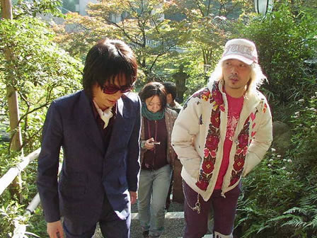 日本庭園に移動しながら、遅刻さんとお喋りする箭内さん。遅刻さんがかけもちする東京ムードパンクスのライブに「オレタチ」というバンド名で出演を控えていた箭内さん。ライブについての悩みをまじめに相談中です。