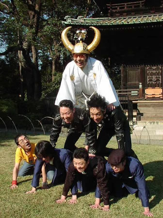 日本庭園で撮影スタート。いきなり人間ピラミッドに挑戦し始めた面々。港さんが一番上に乗って「人間タワー」に成功!一番下の人は本当に重かったようで、小園さんは撮影が終わってもしばらく立ち上がれず涙・・・。