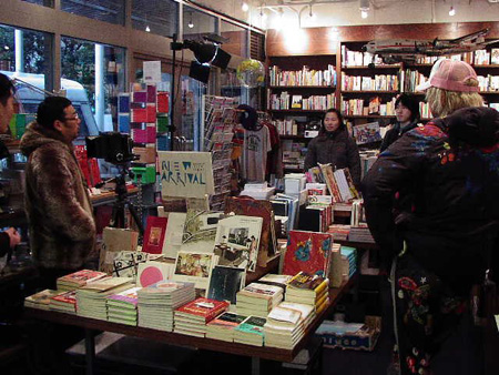今回の撮影場所となったのは、都内・青山の〈246 CAFE&BOOK〉。ここは“旅”をテーマにした本を扱う本屋さん&カフェ。あいにく雨の日曜日……。しかし、こんな日に本屋やカフェで過ごすのも素敵?