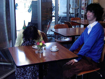 「それでは最後はキスシーンで」という平間さんの指示に固まる二人! ……もちろん冗談です(笑)! ほっとしたところで、ドキドキだった〈先輩&後輩〉撮影もぶじ終了。