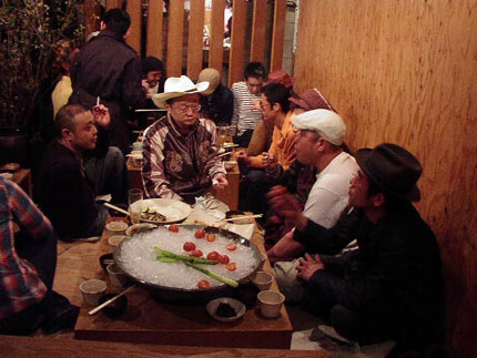 撮影の合間も飲み会は続く。お酒も入って、みなさんいい感じ♪