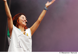 空気も冷え込み、雨はいよいよ本降り。そんななか、クラムボンの登場だ。夕景を彩る色とりどりのレインコート、空には無数のシャボン玉。そんな風景を嬉しそうに眺めつつ、一足早く現れたミトは、「寒くない?」と客を気遣う。1曲目は“Base,Base,Base”。ステージを駆け回りながら唄うミト、デカサン&ジュリアナ扇子で踊る原田郁子。え、いきなりコレ?? ……あまりのギラギラ感に、客は若干引き気味(汗)。でも、これはきっと、寒さを吹き飛ばしてあげようという彼らの優しさなのだ。その後はいつものクラムボン。鉛色の雲に覆われた〈WHITE STAGE〉を、ハッピー・オーラで包み込む。「新潟の地震で被災したみなさんに」とのMCに続き“バイタルサイン”が始まると、感極まったかすすり泣く声も……。もう少し観ていたかった気もするが、間違いなく一服の清涼剤を与えてくれた。終演時、誰かが発した「ありがとう!」という言葉が印象的だった。*小田