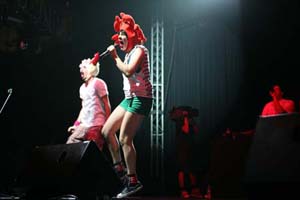 ブラジルからやってきたバイリ・ファンキ・ユニットがデビュー・アルバム『With Lasers』を引っさげていよいよ来日……なーんて前置きがアホらしくなるほどのブっとんだライヴでした。ピコピコ脱力系ビートに乗せてセットがスタートした瞬間、ステージ上は一気にカラオケ大会に突入したかのような盛り上がりに。DJのゴーキーもサンプラーのスイッチを押して機材そっちのけでステージ前面に雪崩れ込み、意味不明の合いの手を入れる始末。そして今年最大の発見と言いたい、マリナ嬢の胸騒ぎの腰つきといったら! コミカルながらキュートなステージングにクギづけ。まさにライヴの〈ハレ〉の部分を切り取った、しょーもなく楽しすぎるステージだったです。*加賀