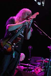 サマソニ来日ついでに単独公演もこなすなど、ヤル気充分なダイナソーJr.。それだけに開演前から、男比率の高い観客は期待が高まりっぱなしだった。そこに登場したのが3匹の恐竜たち! 挨拶抜きで、いきなりフィードバック・ノイズを観客に浴びせかけた。ステージには8台のマーシャル・アンプが積み上げられていて、ダイナソーのシャープなギター・サウンドが大迫力で響き渡る。ただルー・バーロウのアンプの調子が悪かったみたいで、ちょっとイラついた様子を見せたりも。そんなルーには一切お構いなしで、白髪を振り乱しギターを弾きまくっていたJ・マスシス。お互いアイコンタクトもせず、ひたすらプレイに没頭する姿が印象的だった。*村尾