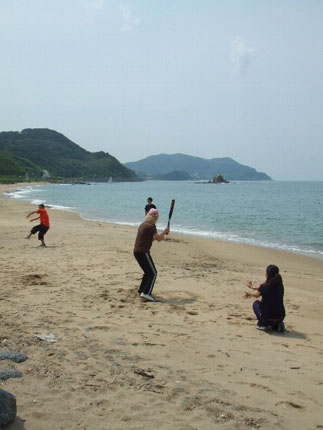 とりあえず、東北人ばかりの撮影チームは南国と海に馴染むため!? 野球など始めました……。