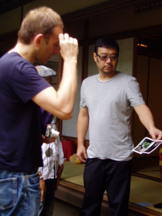 アンダーワールドの中心人物、カール・ハイド氏がついに登場! 「Wow!」「Cool!」と日本庭園を面白がって、デジカメや携帯で撮影してました。