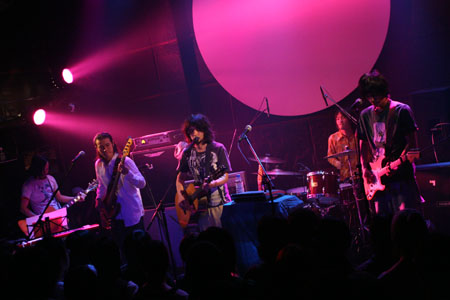 アンコールは、2本のアコギで極上のメロウネスを届けてくれる“微熱少年”。ドリーミーな気分でこの日のパーティーは終了……するかと思いきや、観客は一向に帰る気配を見せず、「タダのくせにオマエら~、ほんま、エエ加減にせえよ~。……でも、嬉しいから(もう1曲)演ります!」――と、メンバー再登場。岩崎によるMCのあいだに他のメンバーが協議した結果、選曲されたのはファンのあいだでも人気の高い“聞いてますか お月様?”。イントロが鳴った瞬間にフロアからは歓声が沸き上がり、この上なくハートフルな空気に包み込まれたまま、2度目のアンコールも終了した。