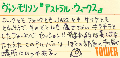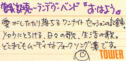 タワレコ新宿店では、本連載と連動する〈曽我部恵一コーナー〉を展開中。今回セレクトしたアイテム全てに、曽我部さん直筆のPOPを添えて紹介しております。邦楽フロアの〈そ〉の棚へGO!