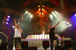 2枚組のベスト盤『メイドインジャパン ~THE BEST OF RHYMESTER~』やプロモ・クリップをまとめた同名のDVDを通じて、年頭にキャリアを総ざらいした2007年のRHYME-STER。そうした一連のリリースの仕上げとして同年3月に日本武道館で行ったステージが、DVD「KING OF STAGE VOL.7~メイドインジャパン at 日本武道館~」でお目見えした。曲間のMCも合わせてステージの模様を漏らさずに収録した特典映像を含むこの2枚組のDVDは、活動休止に至ったグループの歴史をベストな選曲で映す、これまた総決算のひとつに。ヒップホップのオリジナル・フォーマットたるターンテーブルにマイクといった形態、アーティスト同士の結びつき(ゲストは総勢71人!)をパッケージし、まさにヒップホップの教科書のようなショウを展開している。ステージに重みを刻みつける一方で、この舞台に初めて立つにはややオールド・ルーキーな身の上を、曲名にもある〈働くおじさん〉的な自虐めいたアマチュアリズムで笑いめかして進行するステージングが彼ららしい。当時があって現在があることを見せつけたZEEBRAと衰えぬK DUB SHINEが最高の見せ場を作る“口から出まかせ”、節目のステージにひときわ鮮やかな進行形の彩りを加えるFIRE BALLとの“HEAT ISLAND”あたりは観逃せないクライマックスだろう。