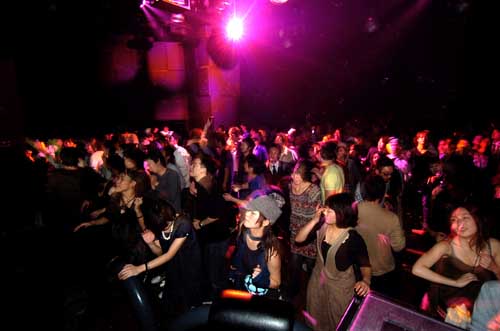 パーティーもいよいよ佳境へ。Frogmanの盟友とでも言うべきDJ、TOBYが繰り出したのは、驚愕のトランス祭り。Ninjaheadこと石野卓球の“Pulseman vs. Sineman”に始まり、グルーヴヤード“Watch Me Now”、サーキット・ブレイカー“Overkill”と、クラシックに次ぐクラシック。ジャーマン・トランス界隈との交流も深かったFrogmanに捧げられた、愛情あふれるプレイに、ダンス・クレイジーたちも歓声を上げて応える。電気グルーヴ“虹”まで飛び出し、天を仰ぐオーディエンス続出。
