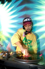 続いて登場したのは、レーベルのラスト・リリースとなったベスト盤『FINE:The Best of Frogman』のメガ・ミックスも担当したTAICHI MASTER。テクノと平行してヒップホップも血肉としてきた男ならではのセンスが氏の持ち味。バウンシーでディスコティックなトラックを、スクラッチも織り交ぜながらガシガシと繋いでいく。そんなDJっぷりを象徴するような〈B-BOYハウス〉の名曲、スウィッチ“A Bit Patchy”が繰り出される頃には、フロアの温度も沸点に。