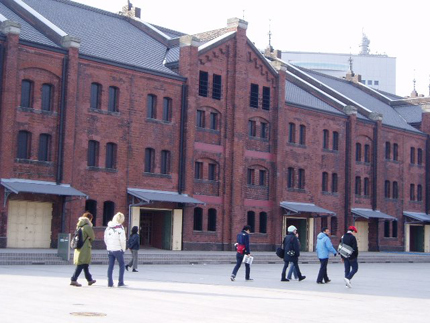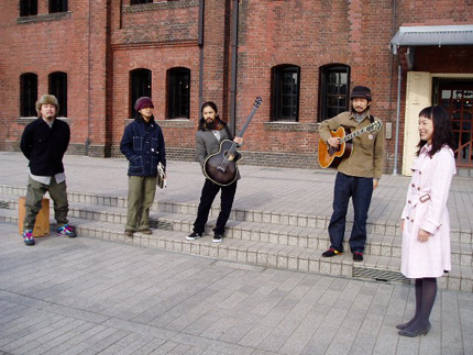 今回の撮影は2007年末、横浜港のふ頭にて行われました。くもりときどき晴れで、冬の澄んだ空気が気持ちのいい朝です! まずは〈赤レンガ倉庫〉前に集合してロケハン。ここは約100年前に建てられた異国情緒漂う倉庫です。