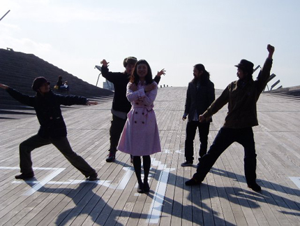 デッキに並んだ5人が「戦隊っぽい?」とメンバーの発言から、戦隊モノ風のポーズをすることに? ピンク役として真ん中に立つKIKIさんに「いまどきだね!」「おてんばなお姫様、って感じで!」テンション上がったメンバーによる思わず意味不明な演出も(笑)? 次々と戦隊風ポーズを決める楽しそうな面々を見て「なんだこれ!」といよいよツッコむ箭内さん(笑)。