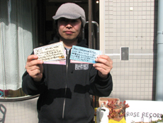 そんなジャケ談義を交わしつつ、今月も曽我部氏のペンはスラスラと滑り……POPが完成です! ROSE RECORDSオフィスの前にてパチリ。