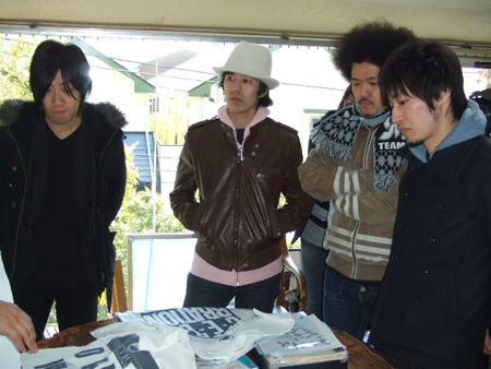 SCOOBIE DOが集合。昨年に自分たちのレーベル〈CHAMP RECORDS〉を立ち上げた彼らは、ドラムのMOBYさんがマネージャーも兼務中! 「衣装はスーツがいいかな??」なんて、真剣に考える一幕も。DIYな感じが素晴らしいです! 初対面となるUNCHAINのアルバムを聴いてきたというSCOOBIE DO。ちなみにヴォーカル・コヤマさんのお気に入り曲は“Precious”!