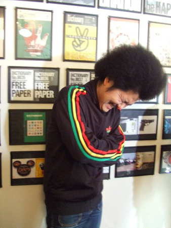 SCOOBIE DOのベース・ナガイケさん、UNCHAINのベース・谷さんが場所をチェンジして、撮影スタート。