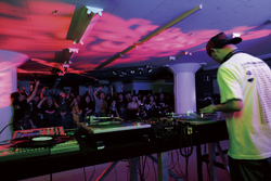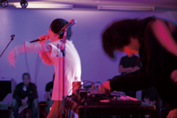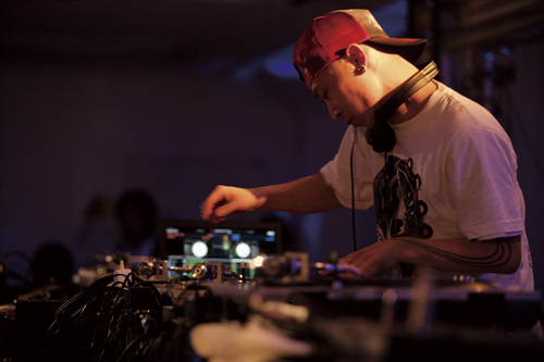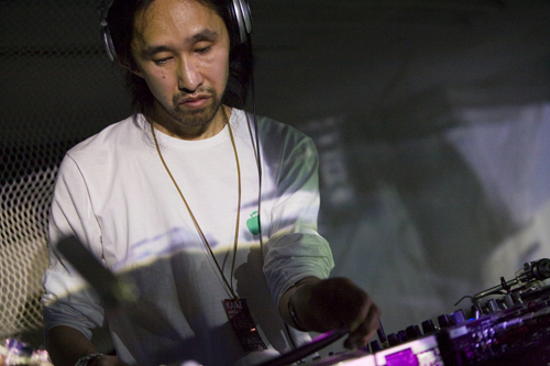 名古屋屈指のハードコア・パンク・バンド、NICE VIEWの嵐のようなライヴが過ぎ去った後、登場したのがDJの瀧見憲司だ。彼はまっさらなフロアに、シューゲイザーとプログレッシヴ・ハウスの融合を予見したチャプターハウスの“MESMERIZE”を浮かべるようにプレイ。そこから緩急を付けて、NYハウス・リヴァイヴァルを目論むDFA発の傑作ピアノ・ハウス、ユアン・マクリーン“HAPPY HOUSE”やリカルド・ヴィラロボスの“Enfants”、ゆらゆら帝国“できない”のリミックスなど、多種多様なトラックを繋ぎながら、1時間半の時間をかけて場のテンションを斜めな角度で上げていった。絨毯が吸音してしまったり、スピーカーが前面にしか配置されていないなど、音響的に不完全なフロアを、それでも巧みにコントロールする彼のプレイは相変わらずの鋭い切れ味であった。*小野田