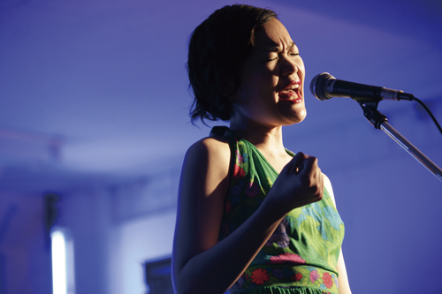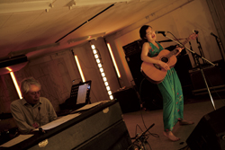 全体的にクラブ寄りの雰囲気&お客さんのなか、「アウェイ感強そうだなー」と思っている間にスタートした二階堂和美のライヴ。この日は渋谷毅との完全2人編成ということで音数少な目の静かな内容でありながら、彼女の濃厚っぷりがたっぷり味わえる嬉しいセットに。懸念していた通り、頭の2曲はなかなかオーディエンスにも火が付かなかったものの、3曲目“Lovers Rock”での歌い上げまくる様子を観て、徐々にフロアから歓声も上がるように。続く9拍子ブギー“いてもたってもいられないわ”では踊り出す観客が一気に増量。それにつられるようにニカさんのテンションもどんどん上がり、さらにそれを受けてフロアの温度が高くなる。ラスト・チューン“今日を問う Pt.2”に到達する頃には完全な独壇場。彼女が顔を歪めるほどに歓声が高まる状況を作り出しておりました。場のムードをきっちりとひっくり返す手腕を、その場にいた全員が味わったことでしょう。*ヤング