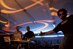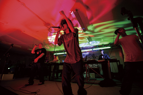 ライヴに定評のあるMJP。この日はDJにKENとHALT、そしてMCはいつものLARGE IRON、JFK、INIという5人編成で登場。ダビーな効果音が鳴り響くなかを鼓動のようなビートが流れ出し、ミステリアスな雰囲気がフロアを包んだところで、3人のフリースタイルからショウが始まった。アルバム『Universal Truth』収録曲をタイトなメドレーで聴かせ、後半は最新シングル“Speed City”や“Alt. Native Music”といったダンサブルな曲でテンションを上げていく。彼らの提唱する〈Ill Dance Music〉 が十分に体感できる内容だった。さらにメランコリックな旋律が印象的な“Loop”なる新曲も披露。6月発売のEPに収録予定だそうで、そちらも楽しみだ。*浅沼