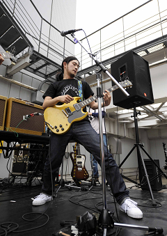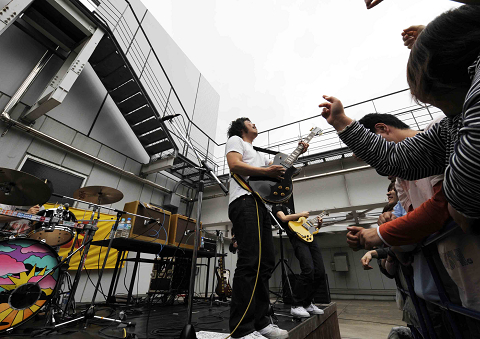 「東京! 新宿! 屋上! いくぞみんな!」というシャウトに続いて鳴らされる、ファンキーなギター・カッティング。うねるグルーヴ・チューン“トーキョーストーリー”に、ビル全体が揺れる!