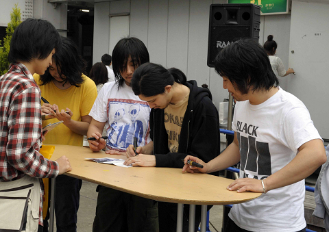 ライヴ終演後、その場で急きょ行われたCD即売&サイン会。100人以上のお客さんが列を作る大盛況ぶり!