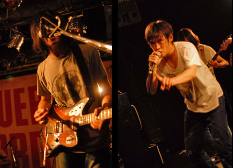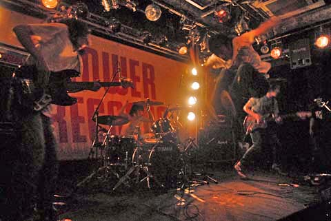 重量級のリズムがフロアを揺らしに掛かるなか、ギターが容赦なく挑戦的なビートを畳み掛ける。初っ端から尋常ではないテンションで突っ走る“ネタのないパブリック”に始まり、セットは間髪入れずに“追い詰められて”へ。彼らとしては緩急が少な目の楽曲だが、とにかくベースが腰にくる。ギター・小倉のコーラスも新鮮だ。