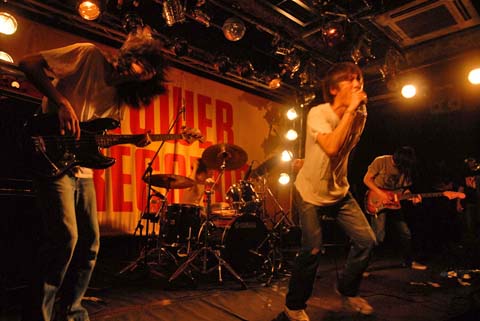 フロアが歓声で沸くなか、彼らの新機軸が如実に反映された“359°は捨てる”のイントロが響き渡る。ディレイが施されたギター、不適なビート、表情を殺したメロディーライン、鋭利な言葉の波状攻撃。〈押し〉と〈引き〉の絶妙なバランスが楽曲に甚大な爆発力をもたらし、破壊的なグルーヴが場内を覆い尽くす。頭が真っ白になりかかりながら、この曲の冒頭、石井による〈ロウ〉なつぶやきには、ニルヴァーナ“Smells Like Teen Spirit”と同種の匂いがあるなぁ、と思ったりする。