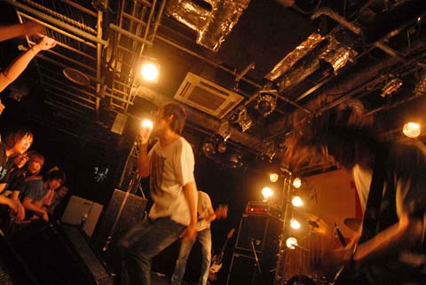 場内が狂騒に覆われるなか、時に、石井はこちらがたじろぐほどに壮絶な目をする。ワンマンの時も同じような表情を見せることがあったが、その目線はフロアを突き抜けて、どこか遠くに向かっているように思えた。〈逃げろ〉と〈逃げるな〉の狭間で彼は何を見据えているのかと、ふと考える。