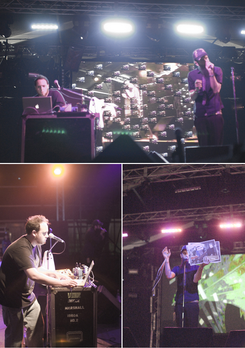 深夜の〈RED MARQUEE〉が似合いそうなダンス系アクトが、初日の午前中にいきなり登場。この時間帯じゃあ厳しいのでは……と思ったものの、いざ音が鳴り出せば、朝から踊りたい好事家たちがワラワラと集結して来た。〈ジャスティスのお気に入りバンド〉なんてフレーズが先行していたこともあり、クールでスタイリッシュなイメージを彼らに抱いていたのだけど、実際にステージに立っているのは、若干ムサいヒゲ面3人衆。ヴォーカルはエアロビのインストラクターみたいな格好だし、ベース&ドラムはエネルギッシュに弾きまくってるし、見てくれは微妙にどん臭い。だが、なりふり構わずにキラッキラのサウンドを奏でている感じが、微笑ましくも胸を打つ。エレポップ直系の官能的なシンセ・ベースがフロアを揺らし、プログレッシヴ・ハウスばりに壮大なメロディーがオーディエンスを高揚させ続けた45分。空になったビール缶を掲げてメンバーを送り出し、ふと振り返ると〈RED MARQUEE〉はいつの間にやら満員御礼。いやあ、なかなか景気良く初日のスタートを切らせていただきました。*澤田