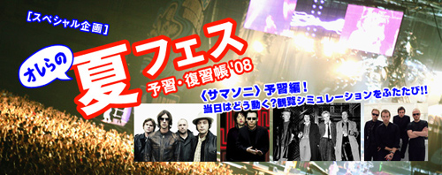 毎年8月に北海道で開催されている地元密着型のロック・フェスティヴァル〈RISING SUN ROCK FESTIVAL 2008 in EZO〉も今年で10回目。そんなアニヴァーサリーな同フェスを祝うべく(?)、編集部スタッフがそれぞれの観覧予定表を手にみたび集結。今回はライターのK10氏も交え、懲りずにシミュレーション・トークを繰り広げております。
