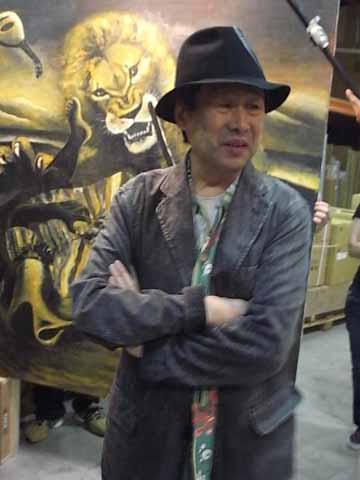 いよいよ撮影スタート。作品の前で「僕は写らなくてもいいんだけどね」と控えめな横尾さん(笑)。