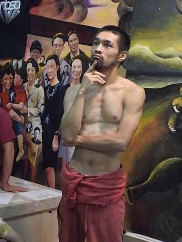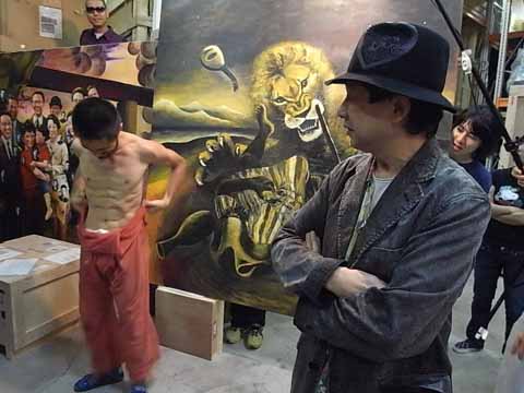 衣装用Tシャツを3枚用意してきたにもかかわらず、結局三宅さんはライヴのときと同じく上半身裸になることに! 横尾さんは「最初会ったときに裸が合うんじゃないかと思ったんだよ」とまたまたアーティスト発言をして満足そう(笑)?