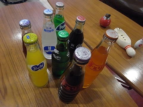レトロなボウリング場の雰囲気に合わせて、小道具として用意されたのは瓶ジュース〈チェリオ〉など! 懐かしい感じですね~。