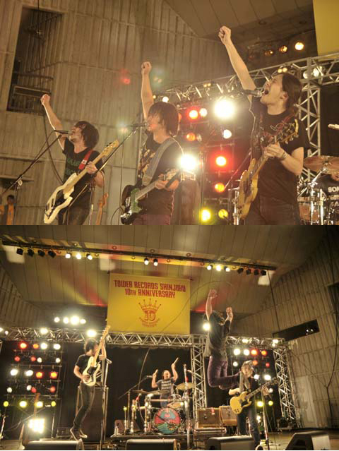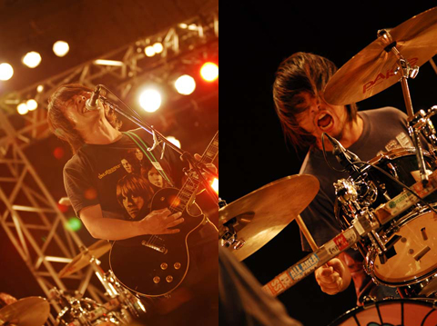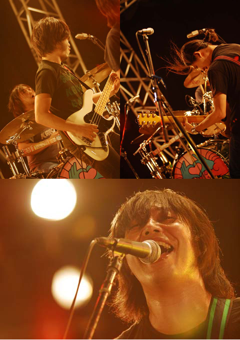 「俺以外の3人は、初の野音だから。超ドキドキしてるから輝かせてやって!」と再び曽我部が叫ぶと、彼らのライヴにはなくてはならない“テレフォン・ラブ”に突入。オーディエンスとのコール&レスポンスを繰り返しながら、どんどんとテンポを上げ、ラウドにひた走るソカバン。その圧倒的なテンションを前に、盛り上がらずにはいられない!