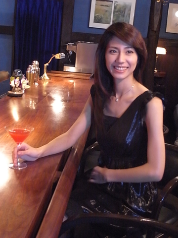 松下さん、2杯目のカクテルは好きな色=ピンクをオーダー(でも実はノンアルコール!)。