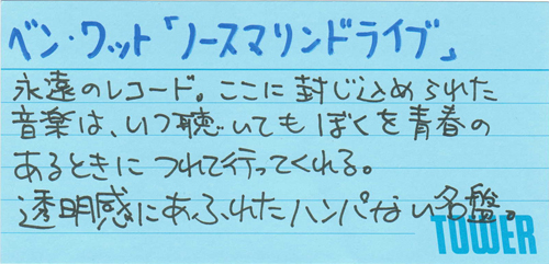 タワレコ新宿店では、本連載と連動する〈曽我部恵一コーナー〉を展開中。今回セレクトしたアイテムすべてに、曽我部さんの直筆POPを添えて紹介しております。邦楽フロアの〈そ〉の棚へGO!