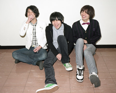 「もともとドラムの(アオキ)ケンスケとは同級生で、同じ女の子に恋をして2人ともフラれたっていうのがバンドの始まりです。音楽性なりスタイルなりがそこで一致したのかも」(ワタル S、ヴォーカル/ギター:以下同)というこの子たちのお約束は、〈ラヴソングしか歌わない!〉。その一貫した姿勢は、奇しくもレーベルメイトのカジヒデキ先輩(いつまでも短パン、サイコー!)を思わせちゃうロマンティスターぶり。
