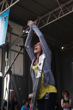 また、今年は女性ヴォーカルを擁したバンドが飛躍的に増えたのも特徴。ヴォーカルとギターの姉妹から成るエモ・ポップ・ユニットのメグ&ディア、弱冠17歳ながら初参戦となったソロ・シンガーのライツ、〈アメリカ版Perfume〉とも言える3人組ガールズ・ユニットのミリオネアズ、男女混合スクリーモ・バンドのアイズ・セット・トゥ・キル、メタル・クィーン=マリア嬢率いるイン・ディス・モーメントと、どれもサウンド・スタイルは異なるものの、とにかく女性のステージ進出が目立つ。実際に〈ワープト〉に訪れているキッズの半数は女のコだし、それが同性を支持するのは当たり前と言えば当たり前なのだが。