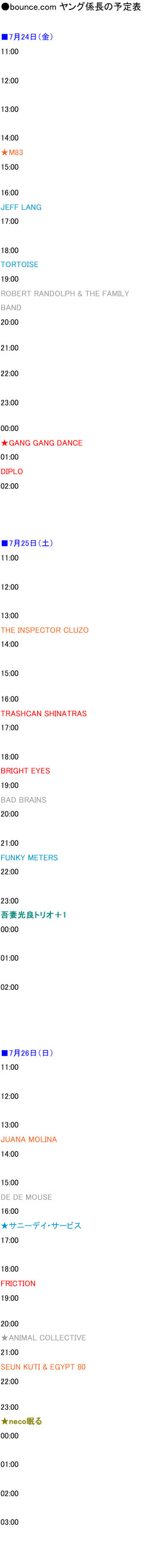 ■■……CRYSTAL PALACE TENT、ROOKIE A GO-GO ■■……苗場食堂 ■■……DAY DREAMING