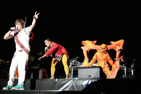 荒木「ベースメント・ジャックス、最後には着ぐるみみたいなの出てきたんですよ。ザリガニのハサミを付けてるやつとか、サーカスに出てくるような足のすごく長い人が2人出てきて、お祭りみたいになって」