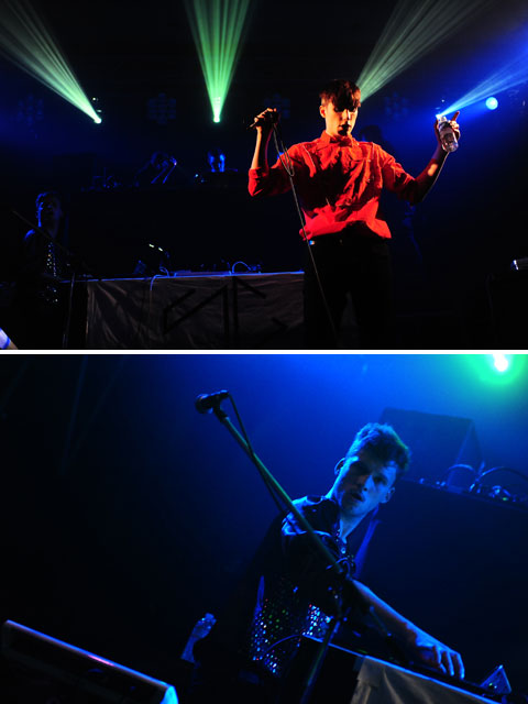 DAF的な香りをプンプン漂わせたドイツの珍妙テクノ・ポップ・ユニットが遂に日本上陸。ド派手な赤シャツやラメ・ベストを着込んだメンバーの出で立ちもさることながら、パンキッシュなピコピコ音&バシャバシャしたシンセ・ドラムと戯れながらハイテンションにステージ上を駆け回る彼らの姿は、文句なしに楽し過ぎ! 〈Oi〉ならぬ〈Hey!〉コールで有無を言わさず盛り上げる“Spieglein Spieglein”をはじめ、全身黒タイツのダンサーが突如登場→フロアに乱入など、はっちゃけまくりのパフォーマンスには、久しぶりに心の底から笑わせてもらいました。今年の個人的ベスト・アクトはダントツでコイツら! *北野