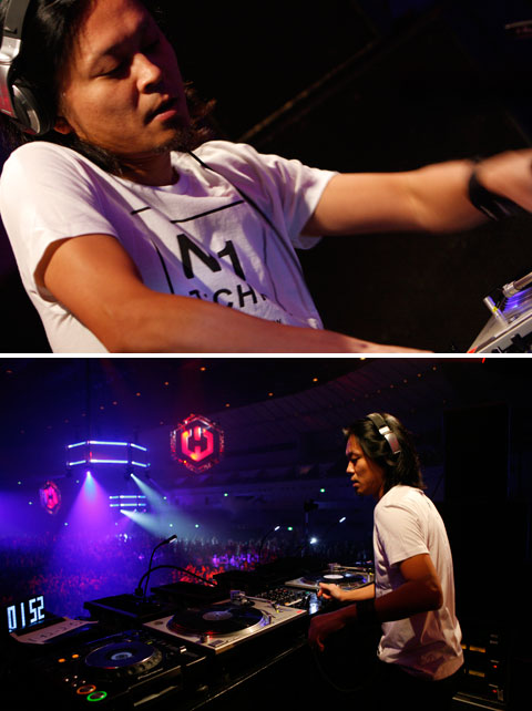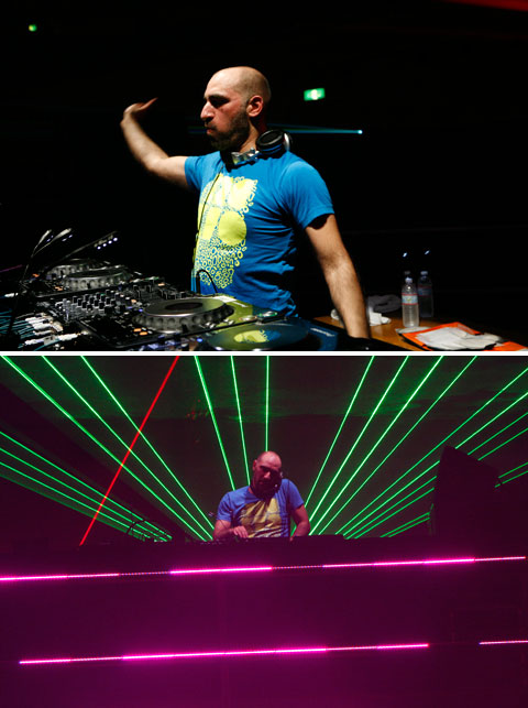 〈WIRE〉初参戦にしてライヴ・セットでの登場となるダッチ・テクノ・シーンの重鎮、2000アンド・ワンことディロン・ヘルミレン。ジェントルな物腰で颯爽とステージに登場すると、まずはスヴェン・ヴァスもミックスCDにピックアップしていた名曲“Adonai Elohim”からスタート。ディープなシンセ・リフが執拗に繰り返される冒頭部分から、徐々に鬼マッシヴなハード・ミニマルへと移行していくお約束な展開にフロアは早くもヒートアップ! その後も、セクシー姉ちゃんのエロ声が飛び交う“Spanish Fly”などを、CD音源よりもビートが補強された圧殺ヴァージョンで次々と投入し、意外なまでのハード番長ぶりを見せつけておりました。いやもう汗だくッス! *北野
