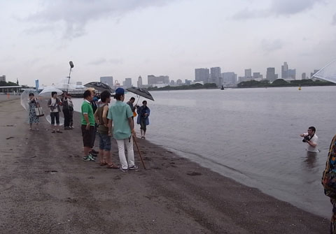カメラマン平間さん、砂浜を駆け抜け、カメラを持ったまま海に突入し――すぐさま撮影。メンバーの皆さん、スタッフ一同ア然でしたが(笑)、男気を感じました!