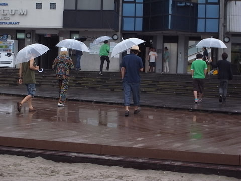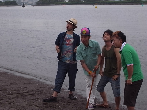「天気は曇りだけど、心はサンシャイン~!」との難波さんの声に、MONGOL800の皆さんもハイテンション!!!で撮影中。