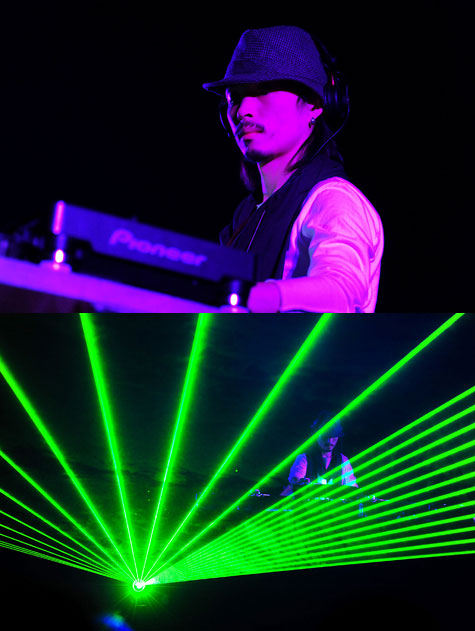 “Suns Of Temper”“Luxman Furs”といった最新作『Totems Flare』からの楽曲を中心に、メタルネタのゴリゴリ・チューンやブレイクコア一歩手前の狂騒的なナンバーまでが矢継ぎ早に繰り出され、もはや一寸先の展開も読めない状況に。改名前のクリス・クラーク時代から、トリッキーかつ巧みな曲構成で好事家たちの評価を得ていた彼だが、その才能はライヴでもそのまま大爆発! 緑色のレーザー光線が放射状に飛び交うなか、ノイズまみれのカオティックなビートが次々と表情を変えながら迫り来る壮絶な光景は、果たして愉悦の時間だったのか、それとも悪夢のひと時だったのか? これは体験した人にしかわからない奇跡だ! *北野
