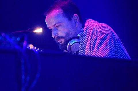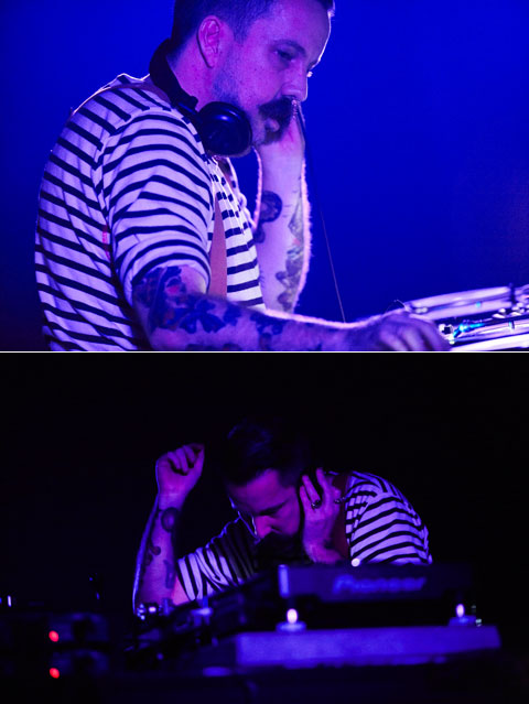 さりげなくワープと男の契りを交わし続けているテクノ番長、アンドリュー・ウェザーオールが〈Room11〉に登場。何と言ってもチャールズ・ブロンソンばりの鼻ヒゲ、ボーダーTシャツにチョッキ、その下はサスペンダーというリアル・マリオな番長のルックスに萌え~! そしてノッてる時の構えるような格好も萌え~! しかし音のほうは、最近のロカビリーやらゴス路線など一切なかったかのごとき純度 100%の硬派テクノ! クリック的シンプルさのなか、普通だったら盛り上げるだろ!と思うところでもアゲきらないストイックぶりに萌え~! やはり番長のDJはホント外しがない! まさにワープの裏大黒柱! 実はこの日いちばん長い出番も最高、その場で水割り作って飲むのも最高、テクノ番長の男気超最高! *石田