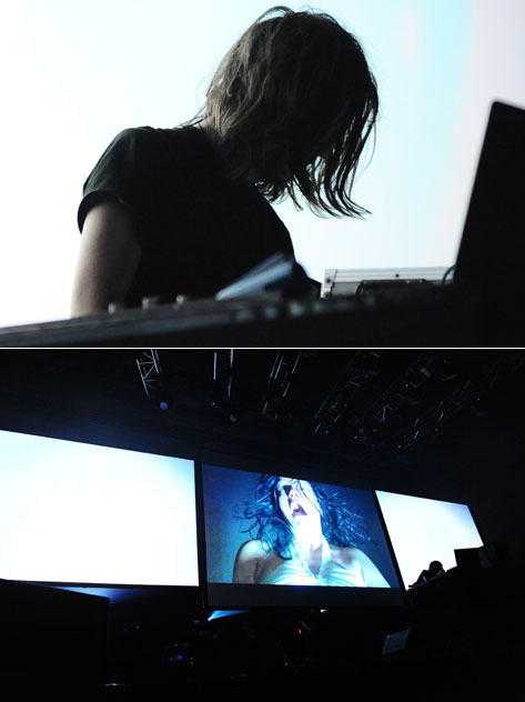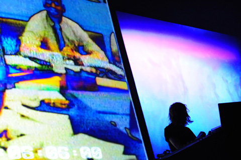その後はAFX“Elephant Song”をバックに裸男女(モロ出し)が殴り合ったり、凶暴ドラムンベースをバックに女性が首を振って叫び倒すホラー的シークエンス(新作)やら、エイフェックス“Windowlicker”やら荒いエロ画像やら犬やら青虫やらメトロノームやらが入り交じったりして〈18禁〉な蟹ワールド全開! そして後半は皆待ってました!なスターウォーズ~「Rubber Johnny」ネタという蟹鉄板画像地獄! サウンドも非常にブルータルかつカオティックで素晴らしい! ということでかなりのシークエンスが2005年といっしょだったのは内緒。しかし初めて見た人は目ん玉飛び出るほど衝撃だったでしょう。モロ出しぶり最高、リンクしたビーム演出も最高、唯我独尊の蟹ワールド超最高! *石田