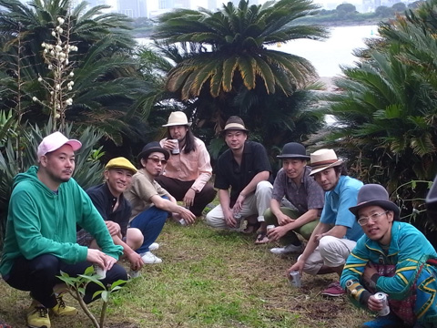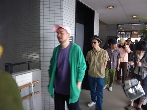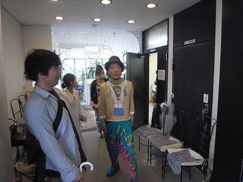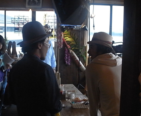 本日2本目の撮影。ハナレグミ(永積崇)さんとCOOL WISE MANのHAMADAさんが挨拶しています。そんななか、他のCOOL WISE MANメンバーも続々いらっしゃいました!