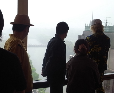 お馴染み〈NO MUSIC, NO LIFE.〉のスタッフが皆で、窓越しの景色を見ながら剣さんの到着を待ってま~す♪